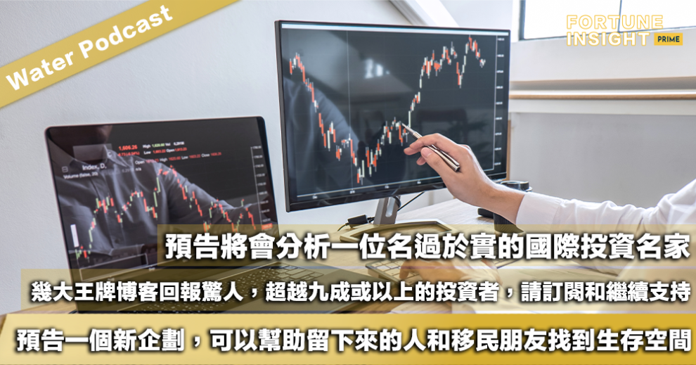 Water Podcast:預告將會分析一位名過於實的國際投資名家。幾大王牌博客回報驚人,超越九成或以上的投資者,請訂閱和繼續支持。預告一個新企劃,可以幫助留下來的人和移民朋友找到生存空間 渾水:金融經濟精神食糧(黑會員) 渾水 January 10, 2022 Share This! Facebook WhatsApp Copy Link 505 【大時大節·送咩畀朋友好?】 送嘢食,一定最實際。個個都一定鐘意鄉下水果!日本水果! 我試食過,都覺得好食! &nb... 馬上成為FI PRIME會員 會員專區 只限會員閱讀 歡迎登入FI PRIME 使用者名稱 / 電郵 密碼 維持我的登入狀態 還未成為FI PRIME會員? 立即訂閱 收看更多精彩內容! 忘記密碼? 港股 渾水 渾水金融經濟食糧 美股 Read These 不得不防!美股兩個最大可能出現的黑天鵝是什麼? 英偉達的最新情況更新!我如何看待它的未來?│科技巨頭在策略上如何擺脫英偉達的掣肘? Water Podcast:某港產美股出現異常波動,倉中這隻股票隨時有機會撈底,等待未來爆升! 閱讀更多文章 FOLLOW US FOLLOW ON INSTAGRAM Hot PostsR4:聲仔遇「康」即生!港股星期四見真章不溫不火都可以好好味架~破頂ing… ed… to be!港股板塊輪流炒