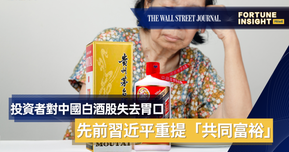 投資者對中國白酒股失去胃口,先前習近平重提「共同富裕」 FI Prime Member 華爾街日報(免費試閱) November 3, 2022 Share This! Facebook WhatsApp Copy Link 66 BY WEILUN SOON | UPDATED NOV 03, 2022 01:40 AM EDT 習近平最近在二十大上強調了他的「共同富裕」計劃。投資者擔心,對於白酒行業,這可能預示著一場整頓行動。這引發白酒股在10月份大幅下跌。 ... 馬上成為FI PRIME會員 會員專區 只限會員閱讀 歡迎登入FI PRIME 使用者名稱 / 電郵 密碼 維持我的登入狀態 還未成為FI PRIME會員? 立即訂閱 收看更多精彩內容! 忘記密碼? fiprime FIPrimeplus fiprime會員專區 THE WALL STREET JOURNAL WSJ 共同富裕 白酒 習近平 華爾街日報 貴州茅台 Read These 【腦震盪】8/10/2025跑馬地賽事回顧7W3Q2T 9/10 (四) 雨果 即市簡評 我的TOKEN2049新加坡之旅 閱讀更多文章 FOLLOW US FOLLOW ON INSTAGRAM Hot PostsR4:聲仔遇「康」即生!R5:巴度「有」貨交!港股星期四見真章不溫不火都可以好好味架~破頂ing… ed… to be!