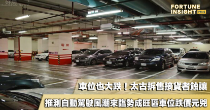 車位也大跌!太古拆售接貨者蝕讓│推測自動駕駛風潮來臨勢成旺區車位跌價元兇