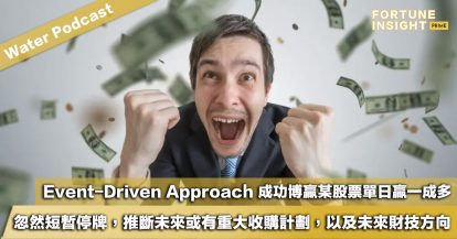 Water Podcast:Event-Driven Approach成功博贏某股票單日贏一成多。忽然短暫停牌,推斷未來或有重大收購計劃,以及未來財技方向