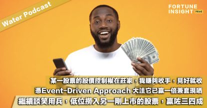 Water Podcast:某一股票的股價控制權在莊家,我賺夠收手,見好就收,憑Event-Driven Approach 大注它已贏一倍兼套現哂!繼續談笑用兵,低位撈入另一剛上市的股票,贏咗三四成