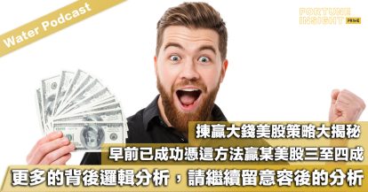 Water Podcast:揀贏大錢美股策略大揭秘。早前已成功憑這方法贏某美股三至四成,更多的背後邏輯分析,請繼續留意容後的分析