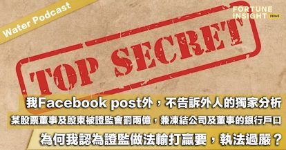 Water Podcast: 我Facebook post外,不告訴外人的獨家分析 – 某股票董事及股東被證監會罰兩億,兼凍結公司及董事的銀行戶口。為何我認為證監做法輸打贏要,執法過嚴?