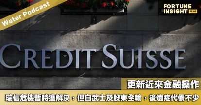 Water Podcast:更新近來金融操作。瑞信危機暫時獲解決,但白武士及股東全輸,後遺症代價不少