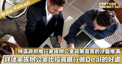 Water Podcast:特區政府推行家族辦公室政策宣言的沙盤推演,詳述家族辦公室比投資銀行做Deal的好處