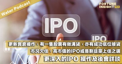 Water Podcast:更新實倉操作,有一隻股票有做溝貨,亦有成功低位接貨。市況欠佳,高市值的IPO或是割韭菜上佳之選,更深入的IPO 操作及後會詳談