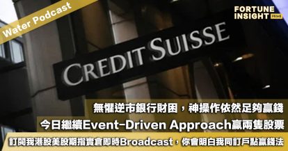 Water Podcast:無懼逆市銀行財困,神操作依然足夠贏錢!今日繼續Event-Driven Approach贏兩隻股票。訂閱我港股美股期指實倉即時Broadcast,你會明白我同訂戶點贏錢法!