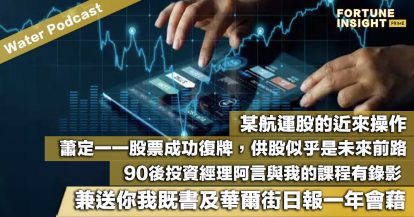 Water Podcast:某航運股的近來操作。蕭定一一股票成功復牌,供股似乎是未來前路。90後投資經理阿言與我的課程有錄影,兼送你我既書及華爾街日報一年會藉