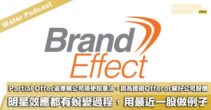 Water Podcast:Partial Offer返嚟嘅公司唔使咁急沽,因為證明Offeror睇好公司股價。明星效應都有蛻變過程,用最近一股做例子