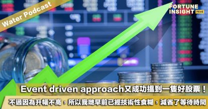 Water Podcast:Event driven approach又成功搵到一隻好股票!不過因為升幅不高,所以我哋早前已經技術性食糊,減省了等待時間