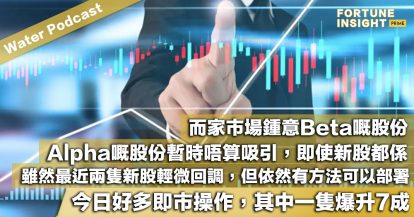 Water Podcast:而家市場鍾意Beta嘅股份,Alpha嘅股份暫時唔算吸引,即使新股都係。雖然最近兩隻新股輕微回調,但依然有方法可以部署,今日好多即市操作,其中一隻爆升7成