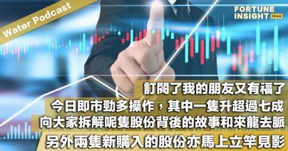 Water Podcast:訂閱了我的朋友又有福了,今日即市勁多操作,其中一隻升超過七成!向大家拆解呢隻股份背後的故事和來龍去脈!另外兩隻新購入的股份亦馬上立竿見影