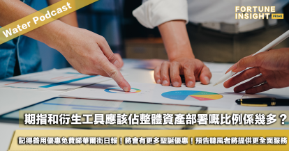 Water Podcast:期指和衍生工具應該佔整體資產部署嘅比例係幾多?記得善用優惠免費睇華爾街日報!未來將會有更多聖誕優惠!預告聽風者將會提供更全面的服務