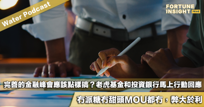 Water Podcast:完善的金融峰會應該點樣搞?金融峰會過後弊大於利,老虎基金和投資銀行馬上行動回應。冇派糖冇甜頭MOU都冇,弊大於利