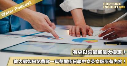 【捕捉靈感成就未來 Fortune Insight正式與華爾街日報攜手合作】 訂閱「FI Prime Plus」(一年計劃)只需港幣 $998,每日少於港幣 $3...