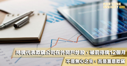 持牌代表欺瞞公司在外開戶炒股,被罰停牌12個月|不是無心之失,而是蓄意欺瞞