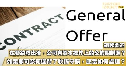 續談要約│在要約發出後,公司有資本操作上的公佈限制嗎?│如果無可奈何違背了收購守購,應當如何處理?