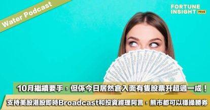 Water Podcast:10月繼續要手,但係今日居然倉入面有隻股票升超過一成!支持美股港股即時Broadcast和投資經理阿言,熊市都可以穩操勝券